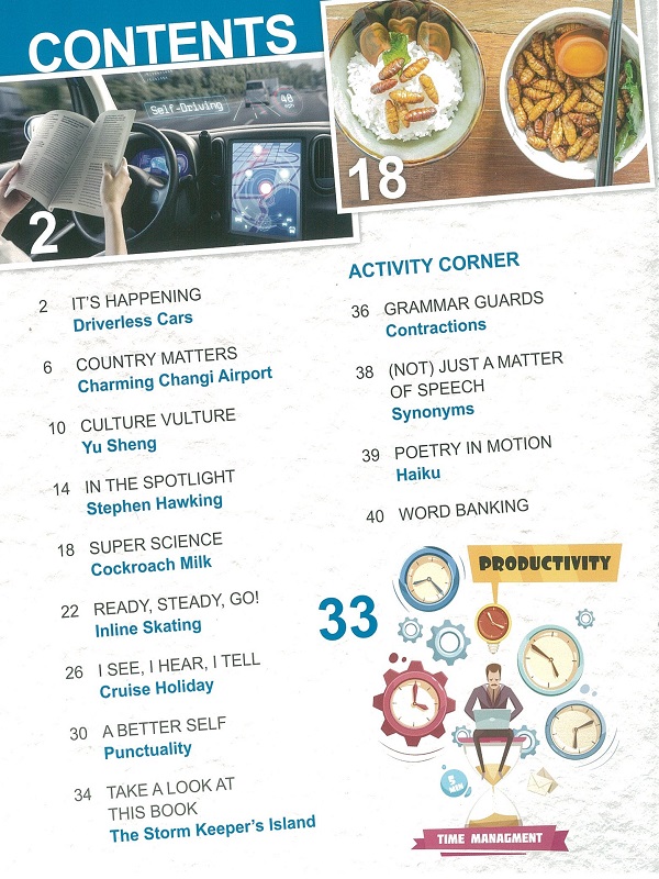 - Each issue features a “Language Fun” section to introduce and guide students on the usage of Grammar, Idioms, Proverbs and Language devices to improve students’ writing.